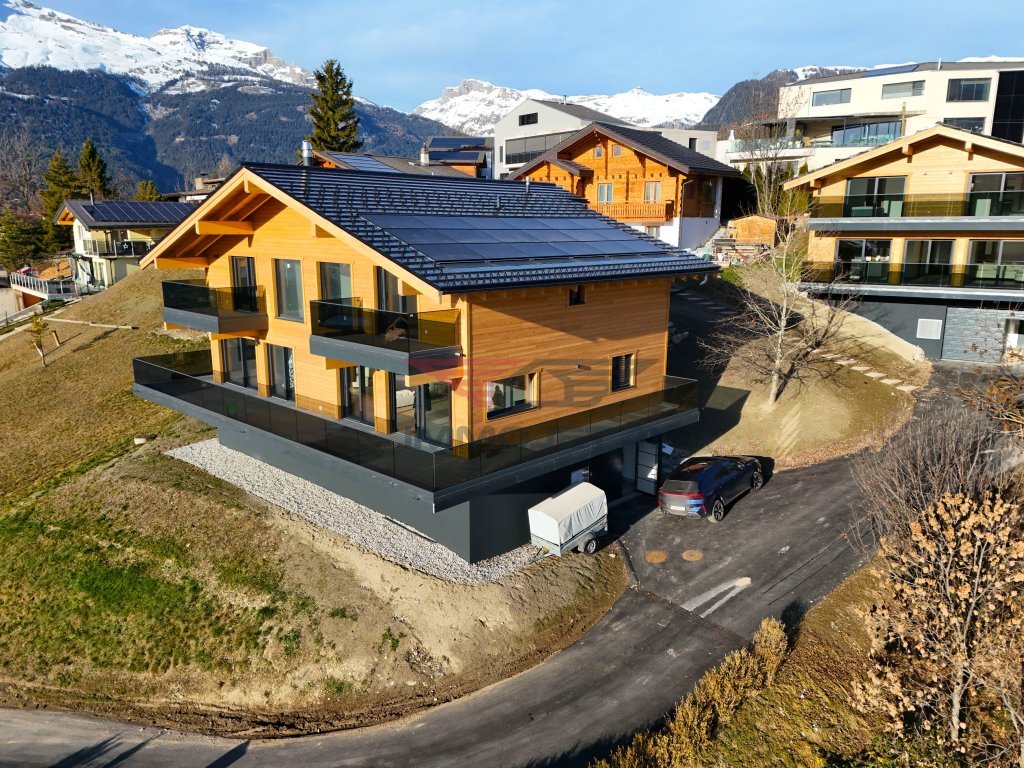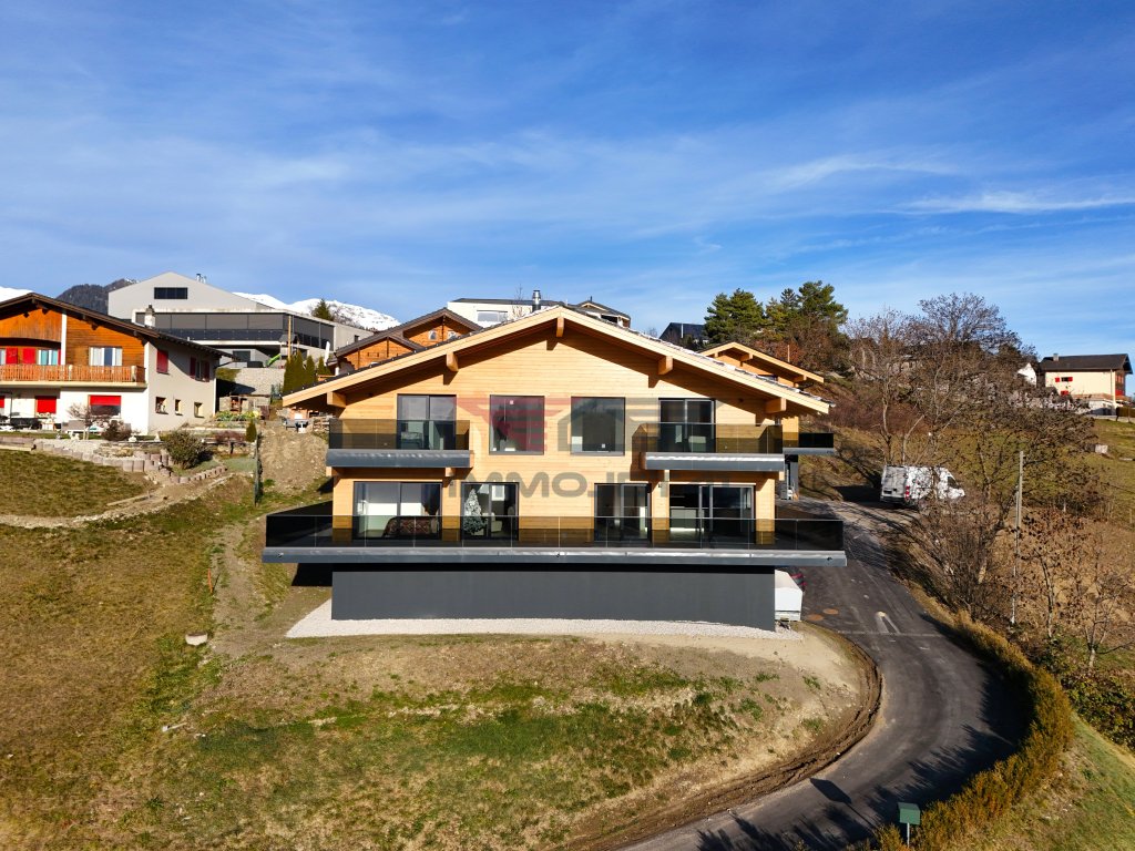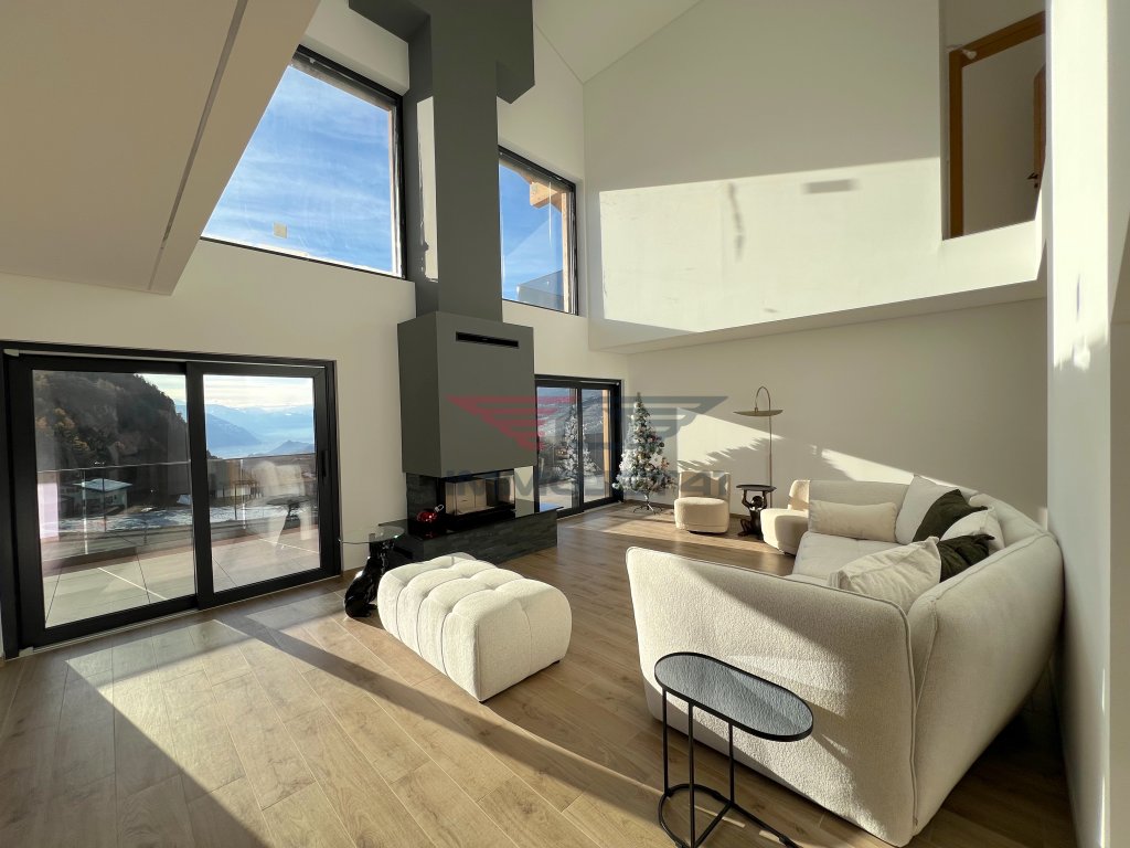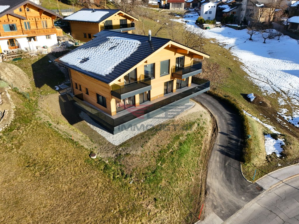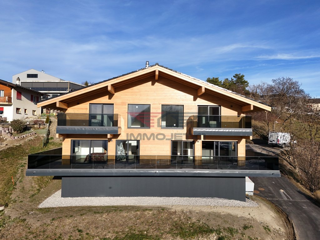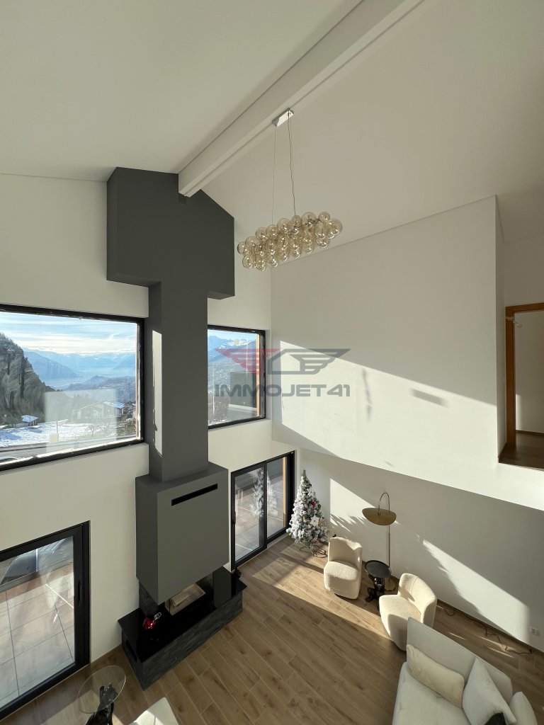 Magnificent brand-new chalet offering charm, modernity, and an exceptional panoramic view over the Rhone Valley. Generous spaces, laid out for everyday comfort and moments of relaxation with family or friends. Contemporary kitchen, family suites, and generous outdoor spaces. Balconies and a 77 m² terrace to enjoy the stunning Valais landscapes year-round.
